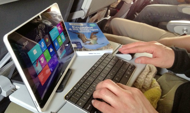 After I gained confidence in the processor, I decided to take the tablet to the next level by adding a Microsoft Wedge mouse and keyboard. Both of these Bluetooth peripherals were created for Windows 8, and are designed to be great travel companions for the tablet–both have minimal profiles, and the keyboard cover even converts into a stand. After several days of using the mouse and keyboard with the tablet, I found myself falling for that set up, which is essentially like an all-in-one, over my laptop. Not only did the peripherals pair well, I loved the flexibility that I now had. I even found that I had less hand cramping by switching back to a mouse.