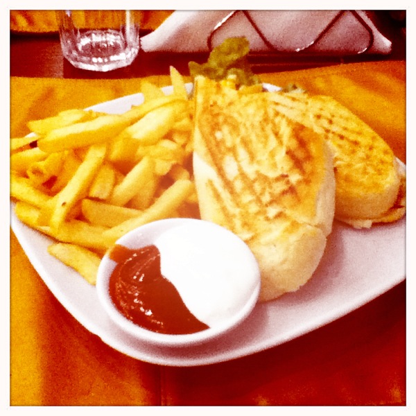 @Sarah Wu, I know, I wish I would have stopped to take a picture. It was a little surreal, so it threw us of our game, plus we were pretty hungry. The dinner was perfect, in addition to the sandwich I also had a slice of cheesecake and Beth had a banana and chocolate crepe.