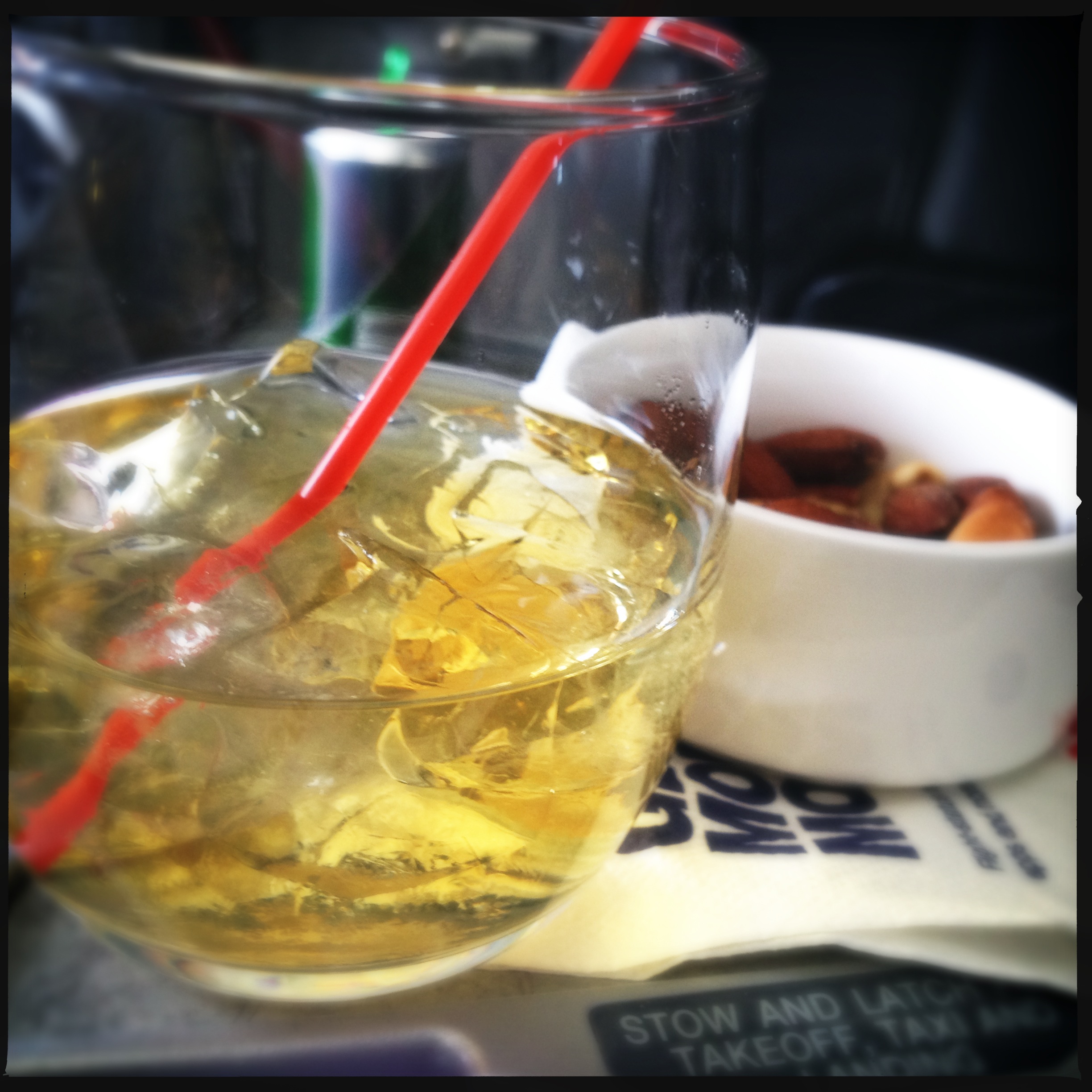 And it was everything we thought it would be–lots of space, plush seats, priority boarding, and complimentary food and beverages. It was magical, there was even one moment where I found myself sipping champagne, listening to Hendrix’s Star Spangled Banner over the airline radio, watching The Office, playing my first winning game of iPhone Monopoly against Beth and eating warm nuts (yes, all at the same time), and I thought to myself this must be what heaven is like.
